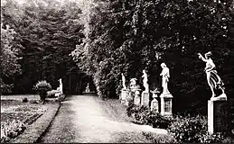 Дворец окружал парк с более чем двумя сотнями копий античных гипсовых скульптур, прудами и озёрами, на которых люди катались на лодках, обводным каналом, ручьями и арыками. В парке были устроены альпийские горки, гроты, смотровые площадки, беседки из живых деревьев, фонтанчики. Устроенная гидросистема парка была самоочищаемая, сообщающаяся с дренажными устройствами и питалась от артезианского источника. Ландшафтная архитектура парка обустраивалась лучшими «парковедами» Европы. Главная аллея парка пересекалась поперечными дорожками. Парк занимал площадь в 150 гектаров. В его центре на небольшой холме стоял дорический храм, в котором находилась копия скульптуры греческих ваятелей «Лаокоон и его сыновья».