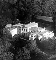 В 1866 году строительство дворца было закончено. Дворец представлял собой двухэтажное кирпичное здание, состоящее из центральной части с колоннами, портиком и полуподвальными помещениями и с более низкими боковыми строениями и двумя поперечными крыльями. Построенное в стиле позднего классицизма, оно отличалось изысканностью геометрических форм. Крыши здания украшались скульптурами.