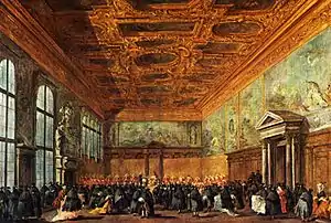 Кроме того, чтобы выполнять функции резиденции дожей, во дворце также размещались политические инстанции республики вплоть до оккупации города войсками Наполеона в 1797 году.