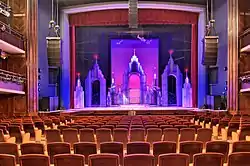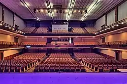 Два крыла дома культуры соединяются мостиками-переходами на уровне второго и третьего этажей[3]. В правом крыле здания расположена театрально-зрелищная часть с объёмным зрительным залом. Высотой 13 метров с двумя ярусами балконов он вмещает до 1200 зрителей. Кассовый вестибюль вынесен вперёд и расположен в отдельном небольшом объёме со скруглёнными углами. На втором этаже находится фойе для отдыха перед спектаклем и малый зал, отделяющий театральную зону от клубной. Клубную секцию площадью 1200 м² по состоянию на 2019 год занимают Институт современного искусства и библиотека, ранее здесь размещались кружки и секции[9][10][1][11].