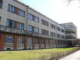 В результате главной частью стал угловой — южный — четырёхэтажный корпус. Окна в нём объединены тёмными простенками, создающими иллюзию ленточного остекления. Ряды окон и длинные балконы сдвинуты к северному краю — традиционный для конструктивизма приём создания динамики. Стены покрыты графичной рустовкой. Вход оформлен тёмными колоннами упрощённой формы. В глубине к нему примыкает пониженный объём малого зала с большим горизонтальным витражом. Из него выступает стеклянный цилиндр, в котором «парит» винтовая лестница. Эти наиболее яркие приметы конструктивизима больше всего и пострадали от времени и небрежения.