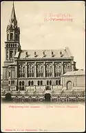 На этом месте по проекту архитектора Гаральда Боссе была построена Немецкая реформатская кирха в смешанном романо-готическом стиле. Храм был заложен в сентябре 1862 года, в день празднования тысячелетия Руси. Руководил строительством архитектор Давид Гримм. Фасады были выполнены кирпичной кладкой высокого качества и оставлены неоштукатуренными, лишь отдельные элементы выделили белой краской. Особенно эффектно выглядела высокая башня-колокольня с «перспективным порталом, узкими окнами и высокими щипцами»[3]. Выразительный облик здания высоко оценили современники, в журнале «Зодчий» за 1873 год писали о её «простоте и грациозной пропорциональности частей, [представляющей] по выдержанности и благородству стиля одно из лучших наших художественных произведений»[1].