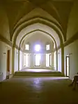 Михраб мечети находится в южном торце зала. Над односветной женской молельней тоже расположено купольное помещение. Оно уступает размерами куполу зала и повторяет его очертания. На фоне призматического объёма, завершенного двумя куполами со слегка заострёнными скуфьями чётко рисуется глубоко затенённый проём портала мечети[49].