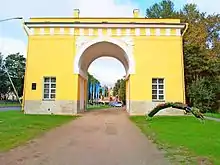 - дом 29а — городские ворота (1826—1829, арх. А. М. Горностаев, И. И. Шарлемань; объект культурного наследия федерального значения[8])