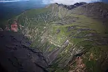 Высота 1485 метров. Площадь вулканической постройки 35 км². В результате разрушительных взрывов от древнего вулкана осталась только дуга кальдеры с северной стороны[3][4].