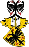 Наиболее раннее из известных в Западной Европе изображений двуглавого орла датируется 1180 годом и помещено на печати графа Людвига I фон Саарвердена[14]. Как государственная эмблема Священной Римской империи двуглавый орёл был принят при императоре Сигизмунде в 1434 году или незадолго до этой даты. Орёл изображался чёрным на золотом щите, с золотыми же клювами и когтями, головы окружались нимбами. В новейшее время его венчали коронами, а в лапы поместили скипетр и меч (в правую), и державу (в левую).