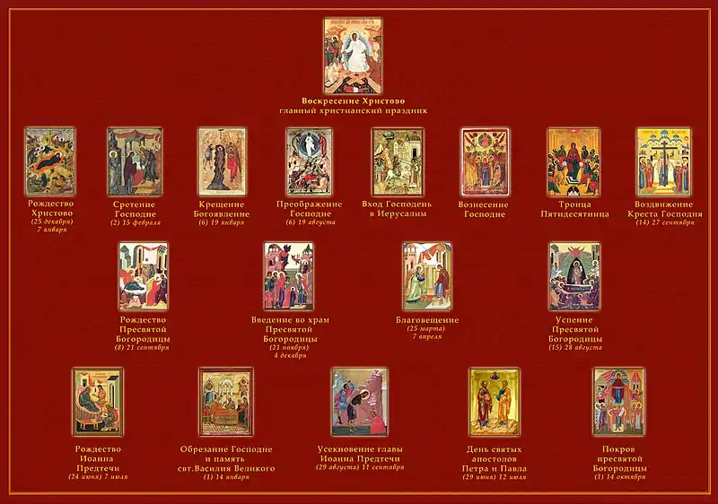 Двунадесятые праздники (по хронологии церковного года, который начинается 1 (14) сентября[1]):