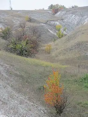 Преобладающим является склоновый тип местности, который характеризуется наличием балок с донными оврагами, песчаных степей и боров, заливных лугов, байрачных лесов. Не стоит забывать и об открытых меловых обнажениях. Вследствие донной эрозии (ведь 22 млн лет назад на этом месте было палеогеновое море), возникли многочисленные яры и логи.