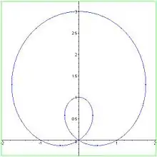 Эта кривая, улитка Паскаля, имеет обычную двойную точку в начале координат и две точки пересечения с осями в точках x = ± i и z=1.
