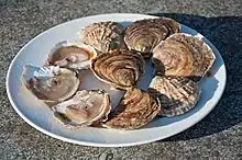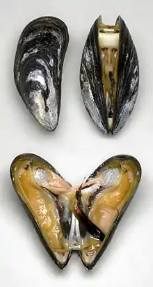 Двуство́рчатые, или пластинчатожа́берные (лат. Bivalvia) — класс морских и пресноводных малоподвижных моллюсков, тело которых уплощено с боков и заключено в раковину из двух створок[1]. К ним относят таких известных моллюсков, как устрицы, мидии, морские гребешки. В отличие от всех других моллюсков Bivalvia лишены головы и радулы. Большинство представителей класса имеют сильно развитые пластинчатые жабры (видоизмененные ктенидии), выполняющие не только дыхательную функцию, но и роль фильтров для отцеживания пищевых частиц из воды, поэтому по типу питания двустворчатые — преимущественно фильтраторы. Большинство двустворчатых закапываются в донный ил, спасаясь таким образом от хищников, некоторые лежат на морском дне или облепляют скалы и другие поверхности. Немногие виды, например морские гребешки, способны к непродолжительному активному плаванию. В целом же особенности внешнего и внутреннего строения двустворчатых отражают их экологическую специализацию к малоподвижному или неподвижному образу жизни[2].