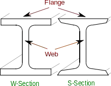 В США чаще всего используют балки с широкими полками (wide-flange (WF) shape).