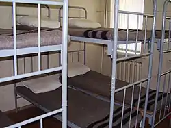 Двухъярусные кровати наиболее часто используются в общежитиях, казармах и хостелах. Для предохранения спящего от падения с верхнего яруса могут использоваться защитные дуги, для облегчения подъёма и спуска — лестницы.