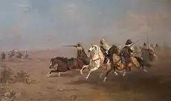 Из его произведений наиболее выделяются баталистические картины, особенно, «Бивуак в 1812 г.», «Конец сражения при Сольферино», «Мазепа», «Прощание французских солдат с их офицерами под Мецем 29 октября 1870 г.», «Раненый солдат» (акварель с гуашью) и др.