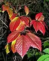 ![]() Девичий виноград пятилисточковый, часть листвы которого поменяла окраску на осеннюю | ||||||||||||||||