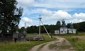 Деревянная Успенская церковь, построенная в 1770 году, являлась одним из наиболее интересных памятников деревянного зодчества вологодской земли. Основной объем церкви состоял из четверика, над которым располагались небольшие убывающие восьмерики. На завершавшей восьмерик крещатой бочке находилась изящная центральная луковичная глава. Примечательна была форма завершения четверика, напоминающего по форме бочку, но очерченного зигзагообразным, а не плавным контуром (такое покрытие называется крещатой бочкой или зигзагообразной кровлей). Подобный (вероятно, местный) вариант завершения четверика очень редок (известен лишь в Никольской церкви Оштинского погоста). На щипцах кровли размещались 4 небольших луковичных главки. По мнению искусствоведа А. А. Рыбакова[8], Успенская церковь сочетала в себе живописную композицию масс и разнообразие криволинейных очертаний с традиционной северной замкнутостью и сухостью архитектурного образа. Мягкостью очертаний луковичных глав вступала в противоречие с резкостью зигзагообразных очертаний четверика[8]. Успенская церковь, закрытая в 1930-х годах, сгорела в 1984 году[9]. Новая деревянная церковь, строящаяся в другом конце села, не похожа на первоначальную; это прямоугольный двухкупольный сруб с притвором и алтарём[9].