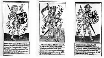 Девять достойных — персонификация идеалов рыцарства и вооружённой добродетели в средневековой христианской (католической) традиции. Девять человек, избранных в качестве образа для подражания всем европейским дворянам, которые обязались с оружием в руках стоять за веру.