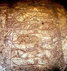 ![]() Изображение девяти луков в Большом гипостильном зале Карнакского храма | |||||||
