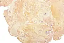 Обычными маркерами дегенеративного процесса при гистологическом исследовании являются фиброхрящевая ткань и наличие кластеров хондроцитов, которые свидетельствуют о реперативном процессе. Воспалительный процесс не обязательно сопровождает ДДЗД. Гистологическое исследование фрагментов диска, подвергшихся резекции для предполагаемого ДДЗД является обычным делом, чтобы исключить злокачественные новообразования.