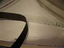 Нередко следствием деградации становится прилипание магнитного слоя к соседним виткам ленты, из-за чего на рабочей поверхности остаются светло-коричневые шероховатые полосы. В результате она становится непригодной к дальнейшему использованию, так как при воспроизведении сильно возрастает уровень шумов, который невозможно удалить даже современными цифровыми средствами реставрации звука.