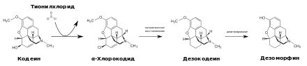 Дезоморфин — одна из модификаций структуры морфина. Впервые был получен при поиске заменителей морфина взаимодействием кодеина с тионилхлоридом и последующим восстановлением полученного промежуточного продукта. Не получил широкого распространения в медицинской практике[1].