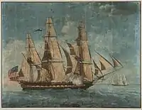 После проведения текущего ремонта в Нью-Йорке, 24 мая 1813 года United States стал частью небольшой эскадры, которая включала захваченный и переименованный HMS Macedonian, а также шлюп USS Hornet. Во время патрулирования, 1 июня три судна столкнулись с сильной английской эскадрой, были вынуждены бежать и укрыться в порту в Нью-Лондоне, штат Коннектикут, где были заблокированы до конца войны[22].