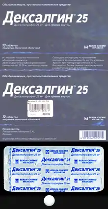 Декскетопрофе́н (лат. Dexketoprofenum) — лекарственное средство, нестероидный противовоспалительный препарат из группы производных пропионовой кислоты. Обладает анальгезирующим и жаропонижающим эффектом, выраженность противовоспалительного действия незначительна. Механизм действия связан с неизбирательным ингибированием ферментов циклооксигеназы ЦОГ1 и ЦОГ2 и блокированием синтеза простагландинов.
