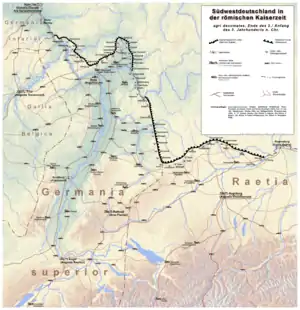 На рубеже I—II веков эта область, вероятно при Домициане, была присоединена к римской провинции Реции и раздавалась за десятинную подать римским ветеранам[6] и галльским выходцам. От этой подати колонисты (но не земли) и получили название «Decumates». От остальной, свободной Германии эта область защищалась целым рядом валов и рвов, проходивших от Регенсбурга на Лорх, а оттуда через Таунус и Оденвальд к Кёльну. Позднее эта область была присоединена к провинции Верхняя Германия (Germania Superior).