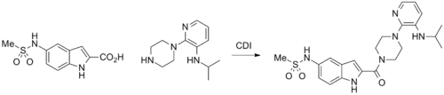 - Romero DL, Morge RA, Genin MJ, Biles C, Busso M, Resnick L, et al. (May 1993). “Bis(heteroaryl)piperazine (BHAP) reverse transcriptase inhibitors”. Journal of Medicinal Chemistry. 36 (10): 1505—8. DOI:10.1021/jm00062a027. PMID 7684450.
