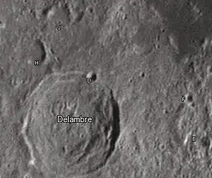 Кратер Деламбр (лат. Delambre) — большой ударный кратер в центральной экваториальной области видимой стороны Луны. Название присвоено в честь французского астронома Жана-Батиста-Жозефа Деламбра (1749—1822) и утверждено Международным астрономическим союзом в 1935 г. Образование кратера относится к позднеимбрийскому периоду[1].