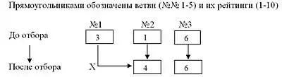 - Отбор — ликвидация одной ветви (признание поражения в позиции этой ветви) и перераспределение её рейтинга между остающимися ветвями с потерей числа очков, равного рейтингу ликвидированной ветви.