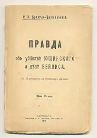 - Бонч-Бруевич В. Д. Знамение времени. Убийство Андрея Ющинского и дело Бейлиса. — 2. — Москва: ГИЗ, 1921. — 195 с. — 10 000 экз.