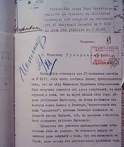 На следующий день, 18 апреля, фракция правых в Думе постановила сделать соответствующий запрос министрам юстиции и внутренних дел. Министерство юстиции отреагировало немедленно: в тот же день министр Щегловитов обратился к министру внутренних дел и председателю Совета Министров Петру Столыпину с просьбой обратить на дело Ющинского особое внимание и составил телеграмму в Киев, возложив наблюдение за делом на прокурора Киевской судебной палаты[комм 2] Георгия Чаплинского. Это было началом официальной политизации дела Ющинского. Георгий Чаплинский — поляк, перешедший в православие, всячески демонстрировал свою близость к крайне правым, по отзывам сотрудника, «в своих беседах поражал своим крайним юдофобством и той ненавистью, с какой он говорил об евреях»[51]. По свидетельству Василия Фененко, Чаплинский открыто высказывал свою симпатию еврейским погромам[52].