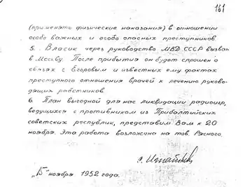 | Записка министра внутренних дел Игнатьева Сталину по «Делу врачей» |