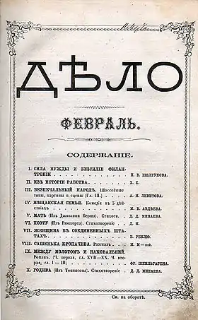 «Де́ло» (Дѣло) — российский периодический «учёно-литературный» журнал, с 1869 года — «литературно-политический» журнал. Ежемесячное издание революционно-демократического направления, орган разночинного радикализма. Издавался в Санкт-Петербурге с середины 1866 года по январь 1888 года.
