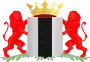 Герб Делфта состоит из серебряного щита с вертикальной чёрной полосой, которая часто изображается с волнистой границей. Полоса обозначает канал («делф»). Герб был утверждён в качестве официального в 1816 году.