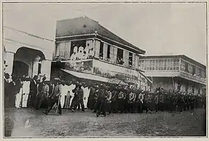 12 июня 1898 года Филиппины провозгласили независимость. 28 декабря 1898 года американские вооружённые силы под командованием генерала Маркуса Миллера начали захват острова Панай. Американские военно-морские силы под командованием адмирала Джорджа Дьюи высадились на Панай и водрузили на нём американский флаг. 2 февраля 1901 года генерал Мартино Дельгадо выступил во главе отряда в составе 30 офицеров и 140 солдат в сторону города Харо[1]. Прибыв в окрестности Харо, он обратился с ультиматумом о сдачи города его отряду к командующему региональными американскими войсками Роберту Хьюзу. После получения отказа Мартино Дельгадо принял партизанскую тактику, вступая в периодические локальные сражения с американцами. Позднее он сдался в городе Харо американскому губернатору Эдмунду Райсу.