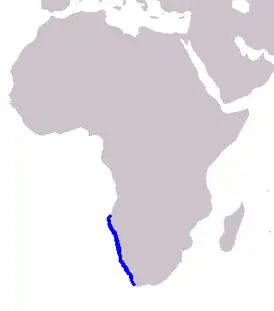 Обитает в прибрежных водах Южной Африки, от Северной Намибии до Кейптауна. Предпочитает мелкие прибрежные воды глубиной до 100 м, на расстоянии 8—10 км от берега, температурой 9—15 °C.