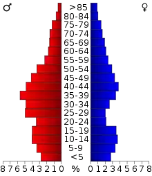В округе проживает 25,1 % населения в возрасте до 18 лет, 8,0 % от 18 до 24 лет, 32,2 % от 25 до 44 лет, 22,3 % от 45 до 64 лет, и 12,5 % в возрасте 65 лет и старше. Средний возраст населения — 36 лет. На каждые 100 женщин приходится 123,3 мужчин. На каждые 100 женщин в возрасте 18 лет и старше приходится 130,3 мужчин[2].