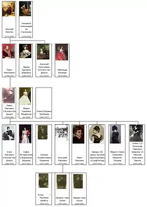 | Василий (1769—1861) | Григорий (1765—1827) | Алексей (1771 — до 1841) | Павел (1798—1840) | Анатолий, кн. Сан-Донато (1812—1870) | Николай (1773—1833) | ||||||||||||||||||||||||||||||||||||||||||||||||||||||||||||||||||||||||