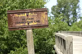 ![]() Корейская ДМЗ (красный) с военно-демаркационной линией (чёрный). | |