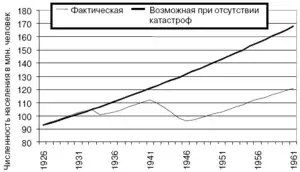 В 1930-х годах начался резкий спад рождаемости[19], при этом смертность оставалась на высоком уровне[26]. По мнению А. Г. Вишневского, демографические потери только в период 1926—1940 годов составили 9 млн (включая 7 млн избыточных смертей)[18]. Впрочем, среди некоторых историков распространено мнение, что при сохранении высокой рождаемости и недостаточно быстрой индустриализации, в силу мальтузианских процессов, число умерших от голода или других лишений могло бы быть существенно выше. Поскольку переход к урбанизированному индустриальному обществу с умеренной рождаемостью в России (и союзных республиках) начался гораздо позже стран Запада, а протекал крайне быстро, он неизбежно стоил больших жертв населению. С подробным описанием неомальтузианских взглядов на историю России можно ознакомиться в работах профессора Сергея Нефёдова. В то же время, как отмечает историк В. В. Кондрашин в своей книге, посвящённой голоду 1932—1933 годов[27]: