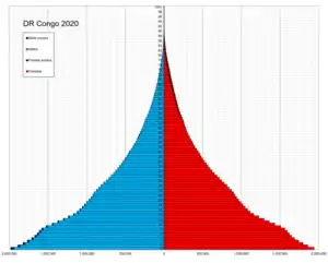 Этнический состав: более 200 народов и народностей, 242 языка, в основном банту; четыре крупнейших народа — монго, луба, конго и мангбету-азанде вместе составляют 45 % населения.