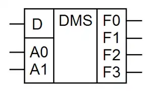 Демультиплексор — это логическое устройство, предназначенное для переключения сигнала с одного информационного входа на один из информационных выходов. Таким образом, демультиплексор в функциональном отношении противоположен мультиплексору. На схемах демультиплексоры обозначают через DMX или DMS.