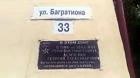 - В Грозном на здании школы № 46, в которой он учился, и на доме[2], в котором он жил, были установлены мемориальные доски.