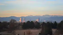 Город расположен в долине реки Саут-Платт на западе Высоких равнин и немного восточнее Передового хребта Скалистых гор. Кроме того, Денвер имеет прозвище Город на мильной высоте из-за того, что он находится на высоте в одну милю (1609,344 м) над уровнем моря, что делает его одним из самых высокогорных крупнейших городов США.[6]
