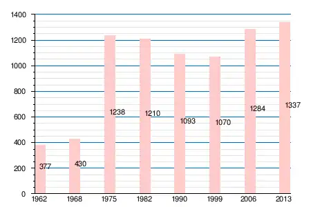 Население коммуны в 2011 году составляло 1310 человек[6], в 2012 году — 1312 человек[7], а в 2013-м — 1337 человек[5].