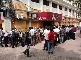 - Для всех банкоматов вводилось ограничение на снятие наличных в 2000 рупий в день. 14 ноября лимит был пересмотрен для банкоматов, использующих новые банкноты в 500 и 2000 рупий и составил 2500 рупий (37 долларов)[6][7].