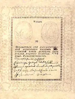 - 1-й выпуск. Ассигнации 1769—1785 годов
