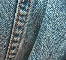 Дени́м (denim; по одной из версий от фр. serge de Nîmes «ткань из Нима») - это прочная хлопчатобумажная ткань с основой, в которой уток проходит под двумя или более нитями основы. Это саржевое плетение создает диагональную ребристость, которая отличает его от хлопчатобумажной утки. В то время как предшественник джинсовой ткани, известный как dungaree, производился в Индии на протяжении сотен лет, деним, как он признается сегодня, впервые был произведен в Ниме, Франция.