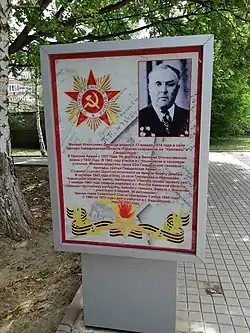 - Имя Героя высечено золотыми буквами в зале Славы Центрального музея Великой Отечественной войны в Парке Победы города Москвы